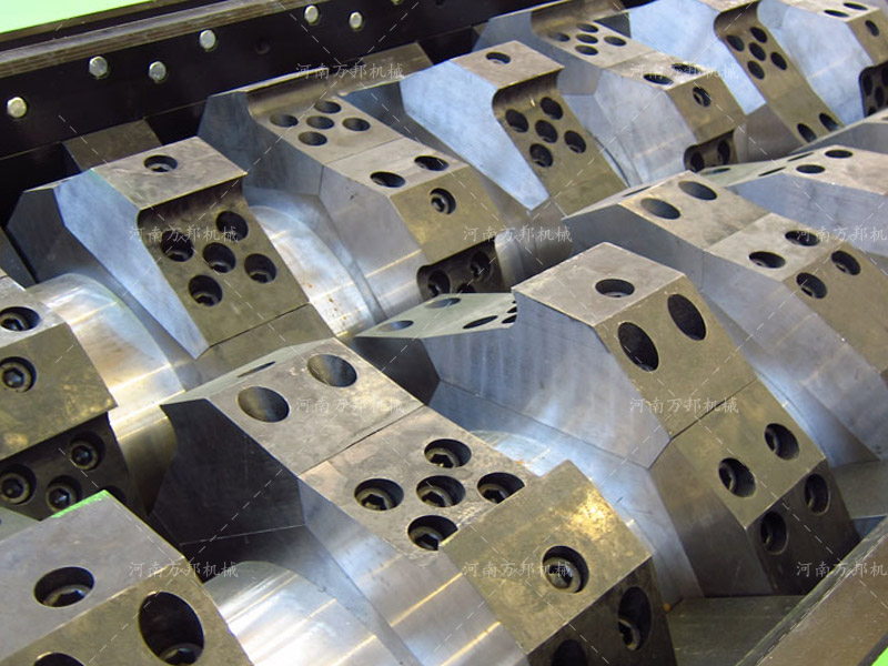 撕碎機(jī)刀片分為定刀和動刀,定刀通過內(nèi)部六邊形卡位孔固定于撕碎機(jī)主軸上對物料進(jìn)行破碎加工。