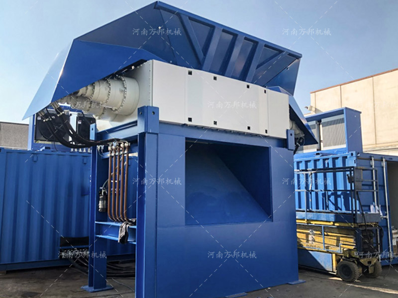 河南萬邦機(jī)械液壓金屬撕碎機(jī)又叫做雙軸破碎機(jī),雙軸金屬破碎機(jī),該機(jī)為河南萬邦機(jī)械依據(jù)市場需求而研究開發(fā)的一種新型剪切式破碎機(jī),該機(jī)主要作為金屬粗碎設(shè)備用于對報廢汽車外殼、彩鋼瓦、油漆桶等大型廢舊空體物料進(jìn)行破碎加工,所加工物料根據(jù)厚度及材質(zhì)種類不同呈顆粒狀或片狀結(jié)構(gòu),該機(jī)相對金屬粉碎機(jī)在具有:噪音低、粉塵少、適用性廣、破碎比大的優(yōu)勢。在設(shè)備適用性上來說金屬撕碎機(jī)主要作為金屬粉碎機(jī)前道粗碎設(shè)備用于對金屬粉碎機(jī)無法破碎的大型金屬進(jìn)行預(yù)處理已達(dá)到細(xì)碎加工設(shè)備處理要求。在設(shè)備構(gòu)成上金屬撕碎機(jī)主要由撕碎刀片組、承載箱體、箱體支架、進(jìn)料系統(tǒng)、動力系統(tǒng),電器控制系統(tǒng)組成,在破碎大型廢舊金屬過程中該機(jī)獨有的動力保護(hù)機(jī)構(gòu)可有效的防止設(shè)備超載造成的設(shè)備損壞。河南萬邦機(jī)械金屬撕碎機(jī)圖片如下: